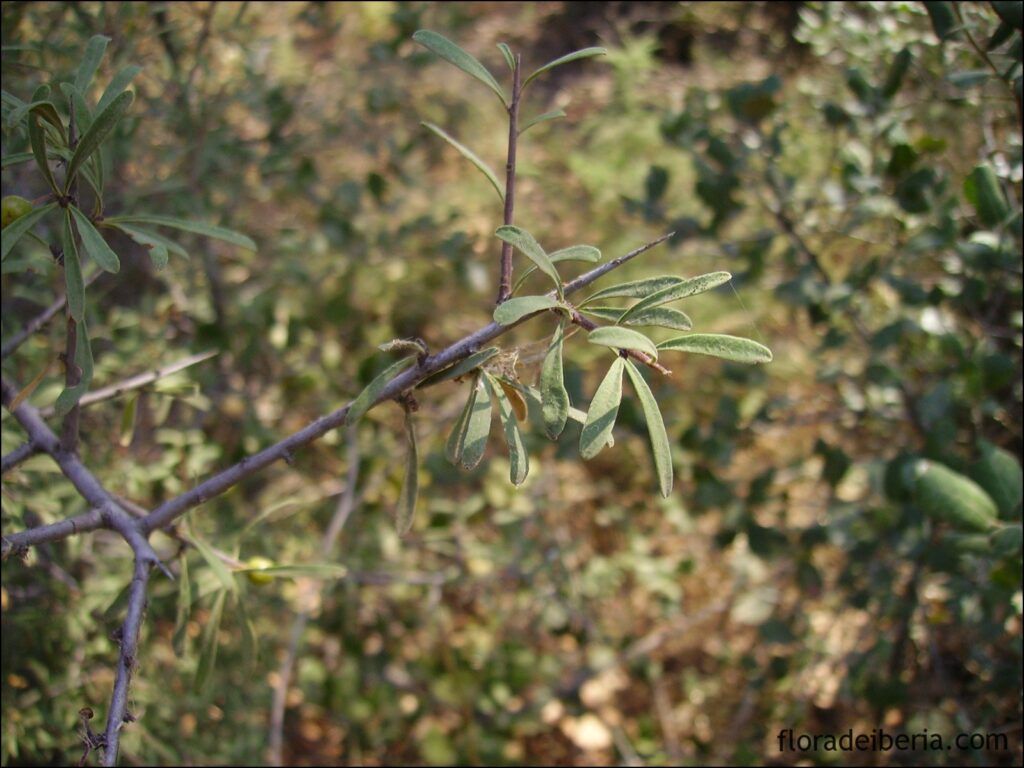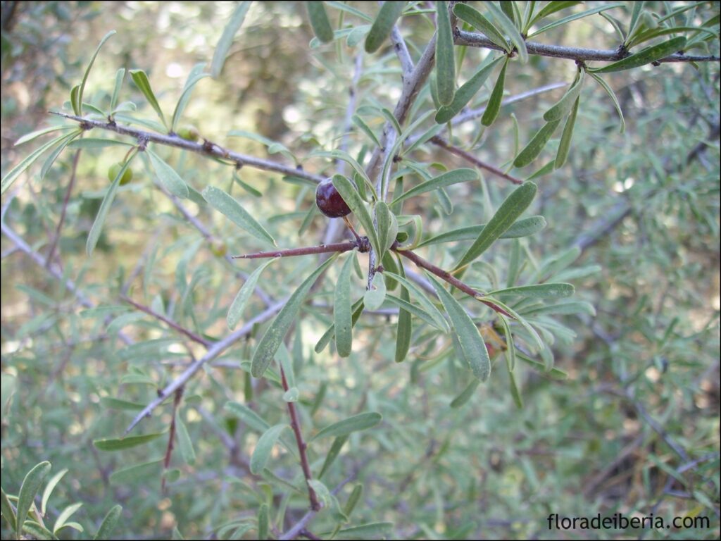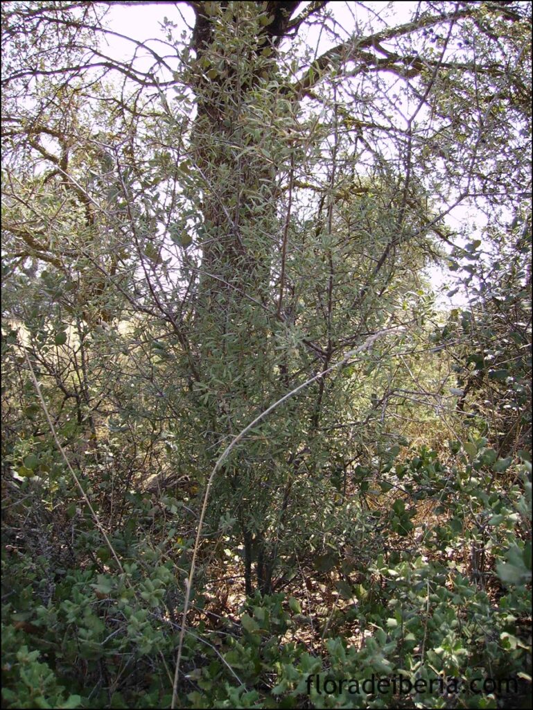 El espino negro (Rhamnus lycioides) es un arbusto perennifolio que raramente supera los tres metros de altura, con abundantes ramas espinosas y de corteza gris clara.