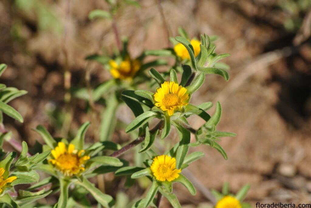 Pequeña planta anual de hasta 50 cm, pubescente, con hojas sentadas, oblongo-lanceoladas a espatuladas y enteras. Flores compuestas con capítulos de flores amarillas, siendo las externas liguladas y no sobrepasando las brácteas involucrales externas las cuales no tienen espina apical, a diferencia de Pallenis spinosa.