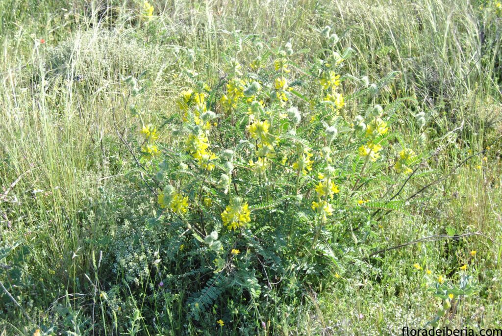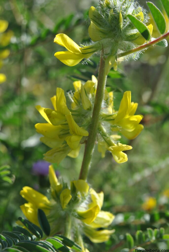 Planta leguminosa con hojas compuestas y flores agrupadas en cabezuelas rodeadas de una pilosidad lanosa, blanquecina. Florece a finales de la primavera y habita en claros de matorral mediterráneo, en pastizales, y taludes sobre suelos calizos.