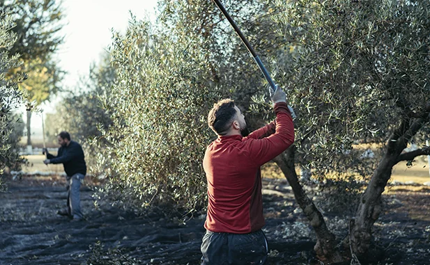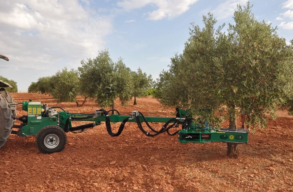 Las fincas modernas emplean vibradores de tronco, paraguas invertidos o cosechadoras automáticas. Estos equipos reducen costes y tiempo, aunque pueden dañar algo más el fruto.
